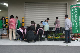 マーケットでは、四日市農芸高校で生産された野菜、卵、草花をはじめ、