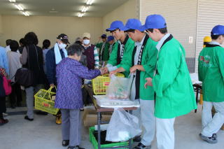 マーケットでは、四日市農芸高校で生産された野菜、卵、草花をはじめ、