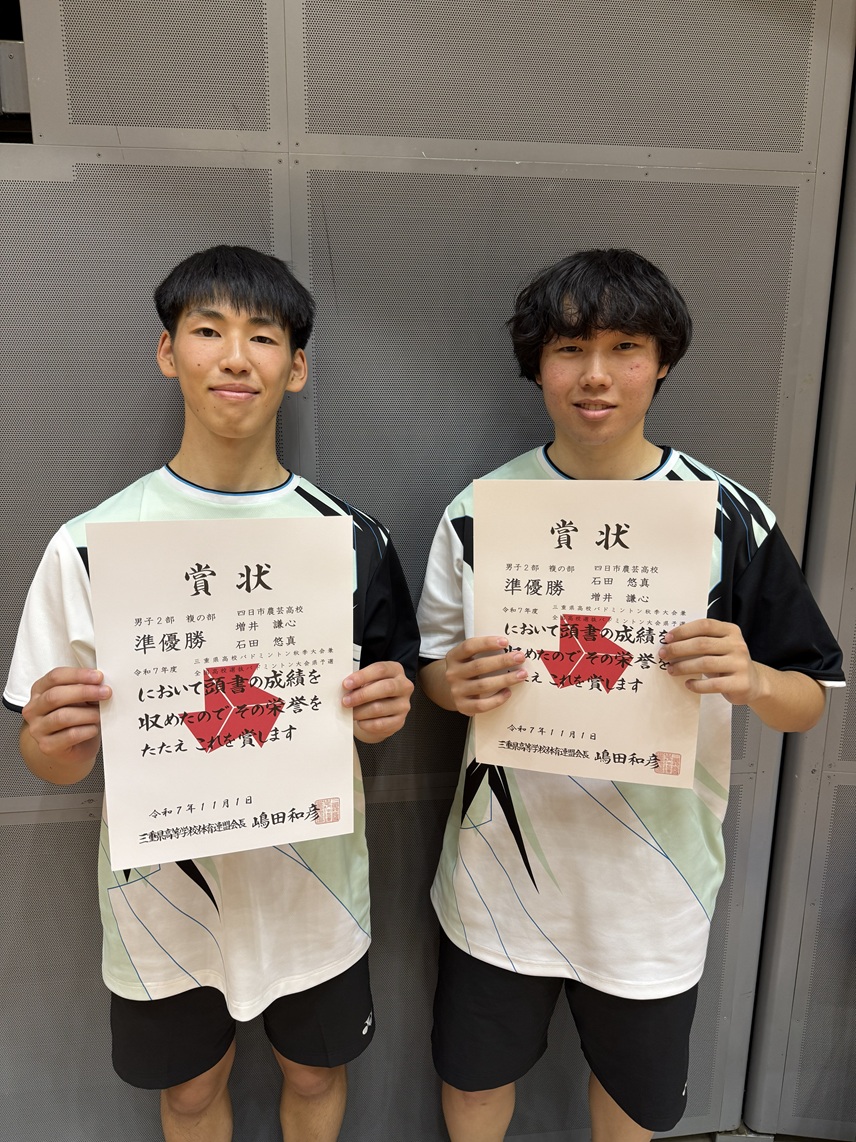 11月1日に行われた三重県高校バドミントン秋季大会において本校の生徒が男子2部ダブルスの部において準優勝をしました!