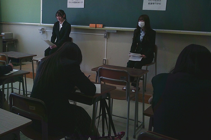 「四大進学者」と「看護大学・専門学校進学者」に分かれて、進学を決めたきっかけやポイント、在学中に努力したことや勉強方法など、それぞれの経験を話してもらいました。