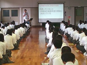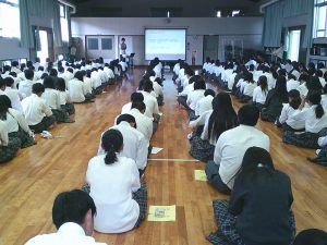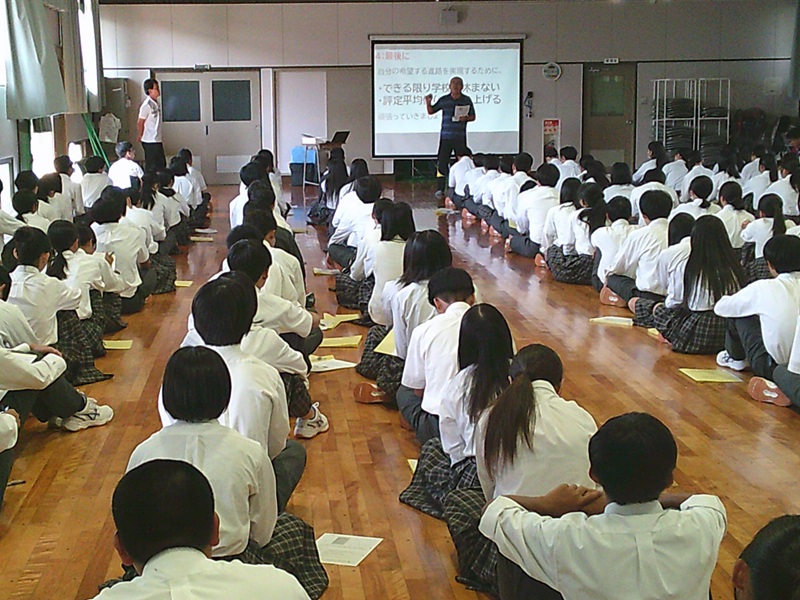 これから進路を決定していく上で、就職・進学共に評定平均値が重要であること、また、2年後に向けて頑張ってほしい事などについて説明しました。