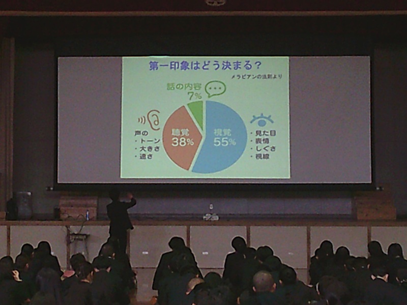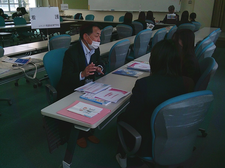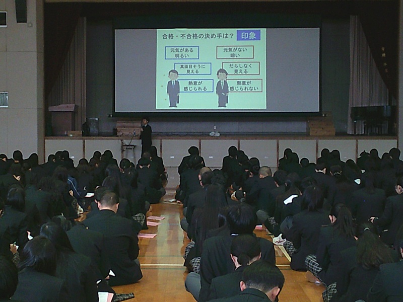 就職希望者は5会場に分かれ、会場単位で面接試験に向けての入退室や、受け答えなどのレクチャーを受けました。