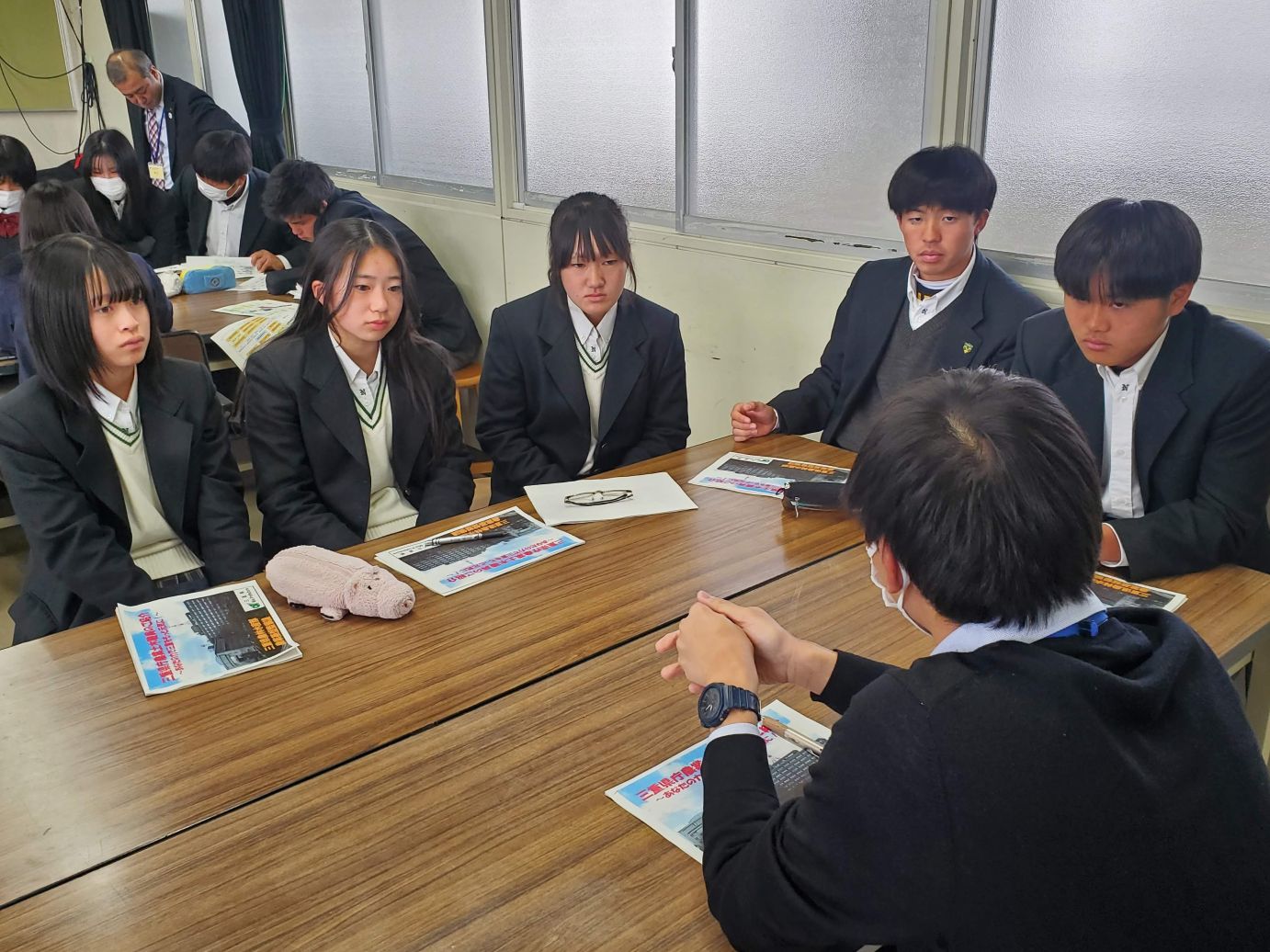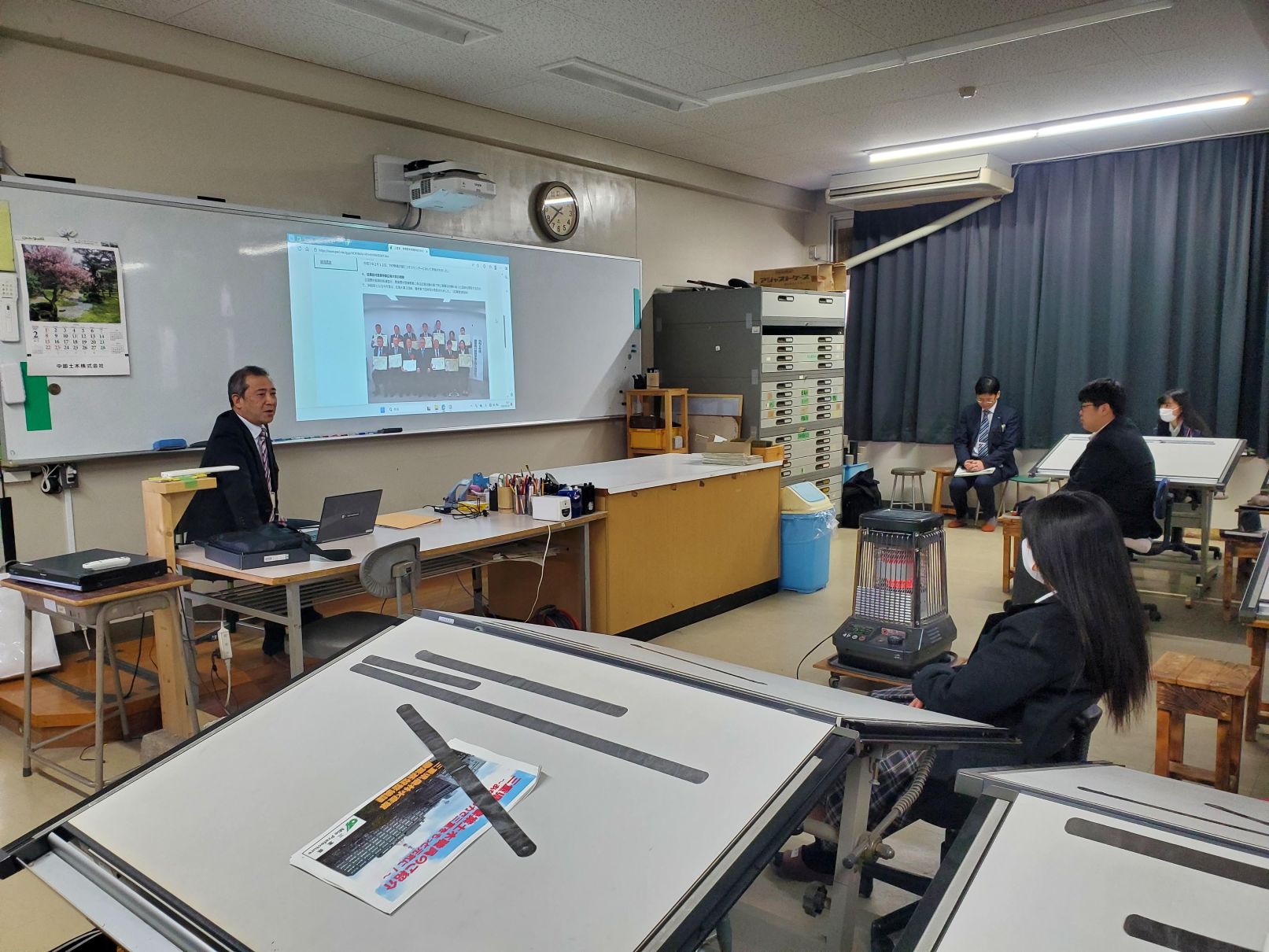 2月20日、桑名農政事務所農村基盤室長谷本さん、四日市農政事務所農村基盤室長織田さん並びに、事務所若手職員8名に来校していただき、環境造園科2年生を対象に講演、交流会を実施しました。講演では、総合土木職の仕事内容、勤務形態など仕事のやりがいや魅力について講演していただきました。交流会では実際に、現場で働いている若手職員の話を聞くことができ、生徒の進路選択の参考にすることができました。今回、来てくださった谷本さん、織田さん、若手職員の皆さん、年度末のお忙しい中、本当にありがとうございました。感謝申し上げます。