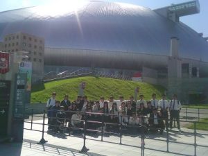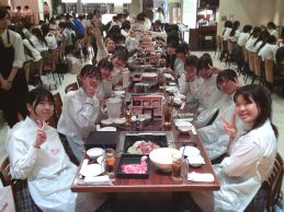 午後4時に札幌に再集合!札幌テレビ塔前で写真を撮ります。その後、自由散策を行い6時に夕食会場に再集合。みんなでジンギスカン焼肉をいただきました。ジンギスカンと一緒に入っていたソーセージもとても美味しかったです。