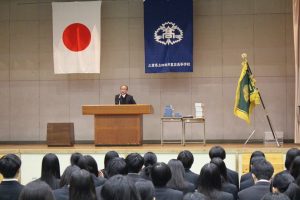 2月27日(金)に、令和7年度卒業生195名の同窓会入会式を行いました。同窓会副会長の金谷様より、お祝いの言葉をいただきました。