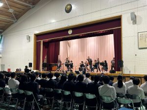 生徒会による開会宣言の後、吹奏楽部によるコンサートから始まり