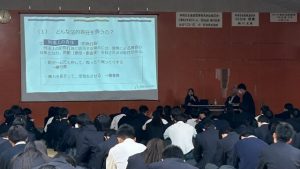 臨床心理士の先生からは、ひとりで抱え込まない、自分の事をしっかり話す、相談する事が大切ということを、弁護士の先生より、いじめやちいさなことでも、人の権利を侵して犯罪につながるという内容でした。