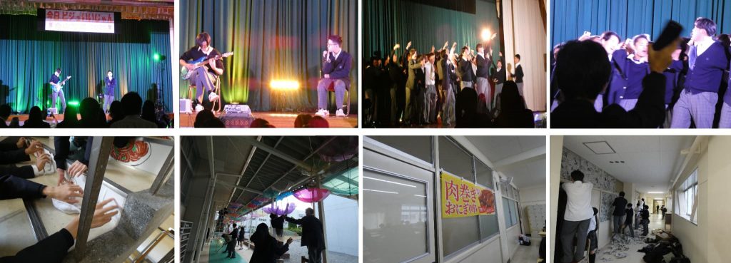 15日(土)この日はクラス展示・模擬店が中心となりました。おばけ屋敷やカジノをするクラスもあれば、焼きそばや肉巻き、焼き鳥など様々な模擬店をするクラスもあります。