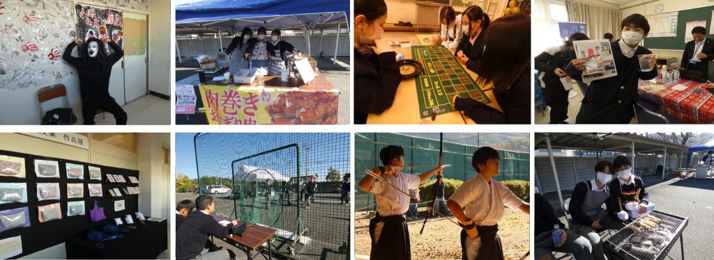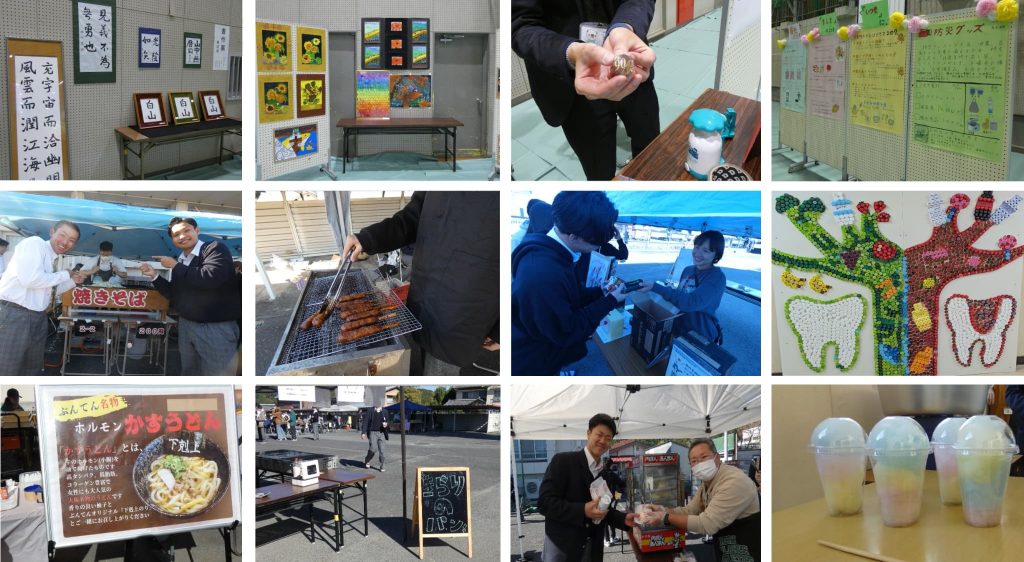 今年は正門や階段・廊下なども飾り付けが施され、部活動や各種委員会が企画展示したり、生徒1人1人がいくつもの団体で色々な役をかけ持ち、みな大忙し!近隣の「ぶんてん」さんや「きらり」さん、PTAの方々にも出店いただきました。この日は保護者の方々や地域の方々や中学生もお招きし、学校全体が大変賑わう1日となりました。
