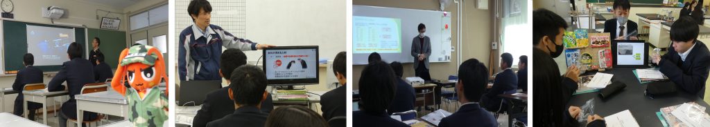 企業・学校説明会では県内外の大学、短期大学、専門学校や企業団体、事業所をお迎えして校舎内の教室を説明会会場として使用し、生徒の皆さんは自分の興味のある会場にて担当者と積極的に意見交換をしました。