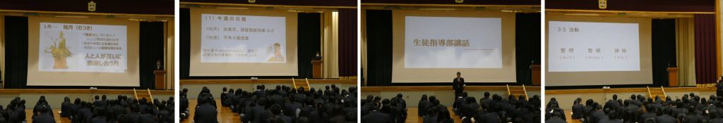 1月8日は令和6年度の3学期始業式・教務講話・生徒指導部講話・保健講話です。