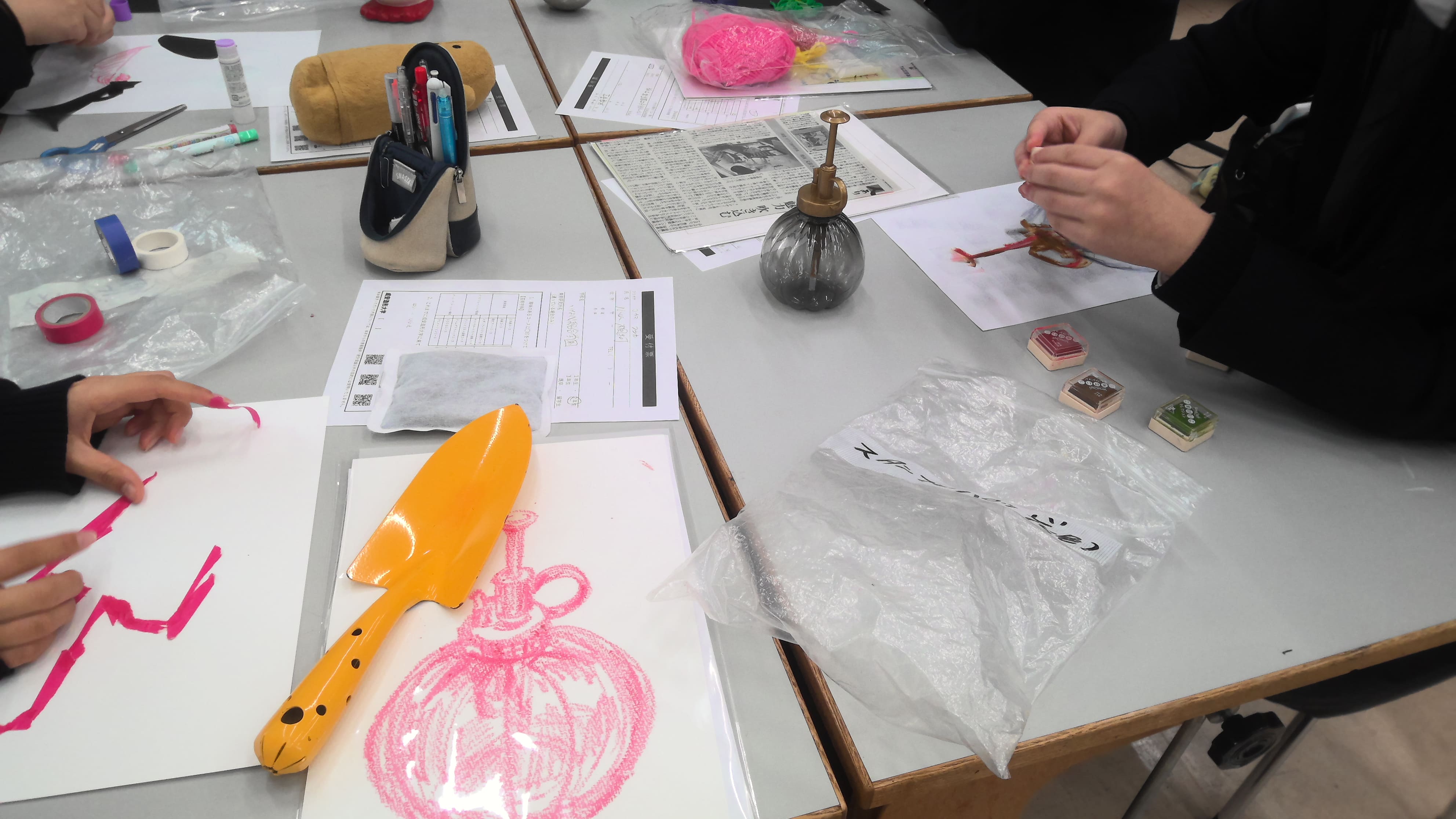 成安造形大学共通教育センター助教森田 在(もりた あり)先生にお越し頂き連携授業を行いました。当日は2年デザイン技術と、放課後には美術部・イラスト部の生徒に実施していただきました。美術・デザイン系列の講座を受講できる本校ならではの発想力をいかした作品ができました。美術部・イラスト部では、さらに本格的にクロッキーに取り組むことができ貴重な時間を過ごすことができました。この経験を明日からの授業や取り組みにいかしていきましょう。