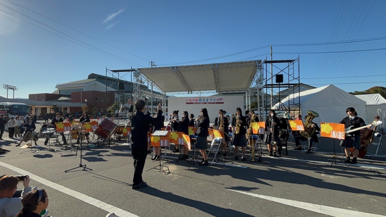 11月15日(土)、員弁運動公園駐車場にて開催された「いなべ市商工まつり2025」に参加させていただきました。絶好の天気にも恵まれ、当日は多くの来場客で賑わい、多くの地元の方々の前で演奏させていただきました。この日が1,2年生だけでの演奏デビューとなり、皆緊張した面持ちでしたが、堂々と演奏することができました。ご来場いただいた皆さま、温かい拍手とご声援、ありがとうございました!