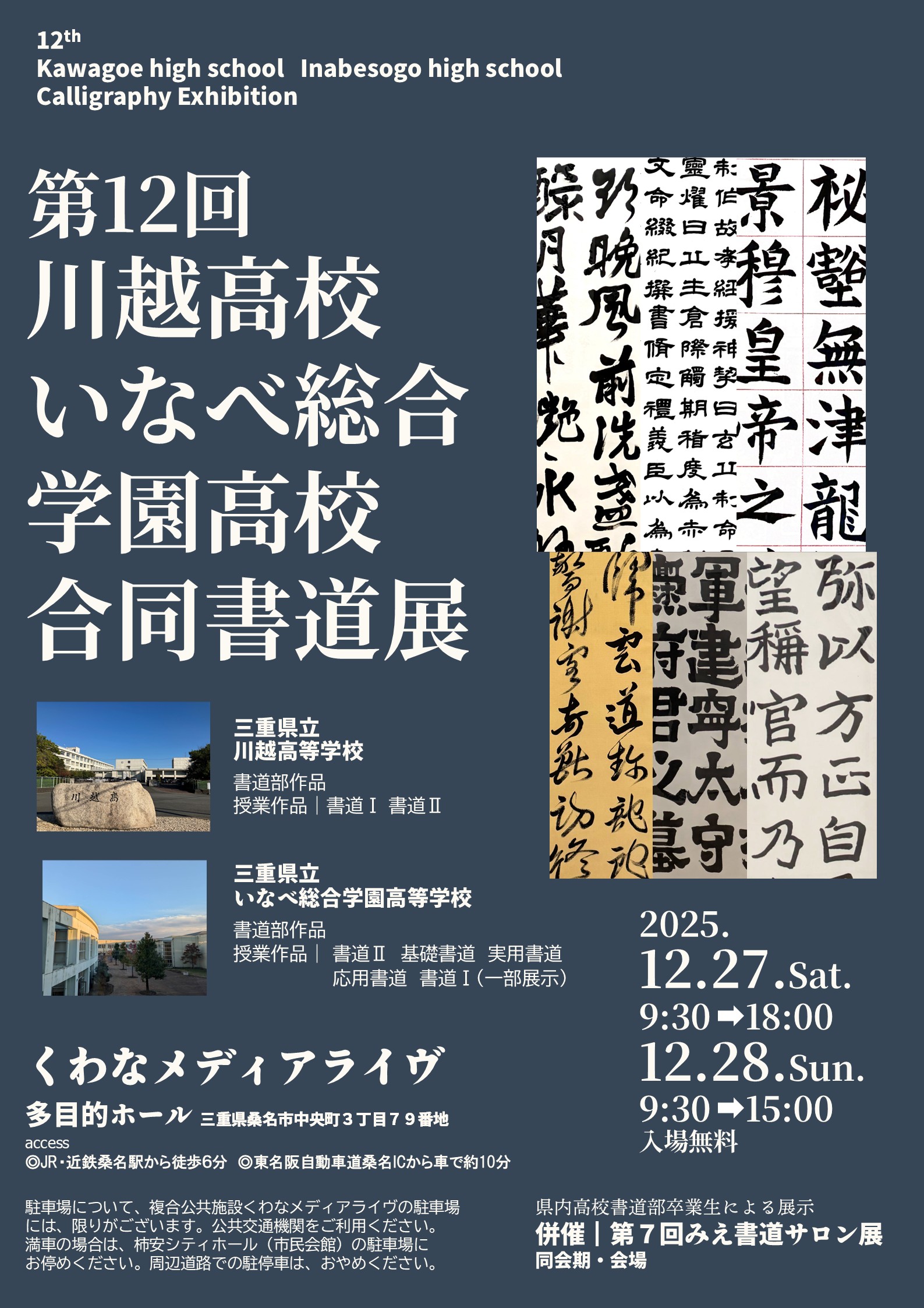 第12回川越高校・いなべ総合学園高校合同書道展を開催します。