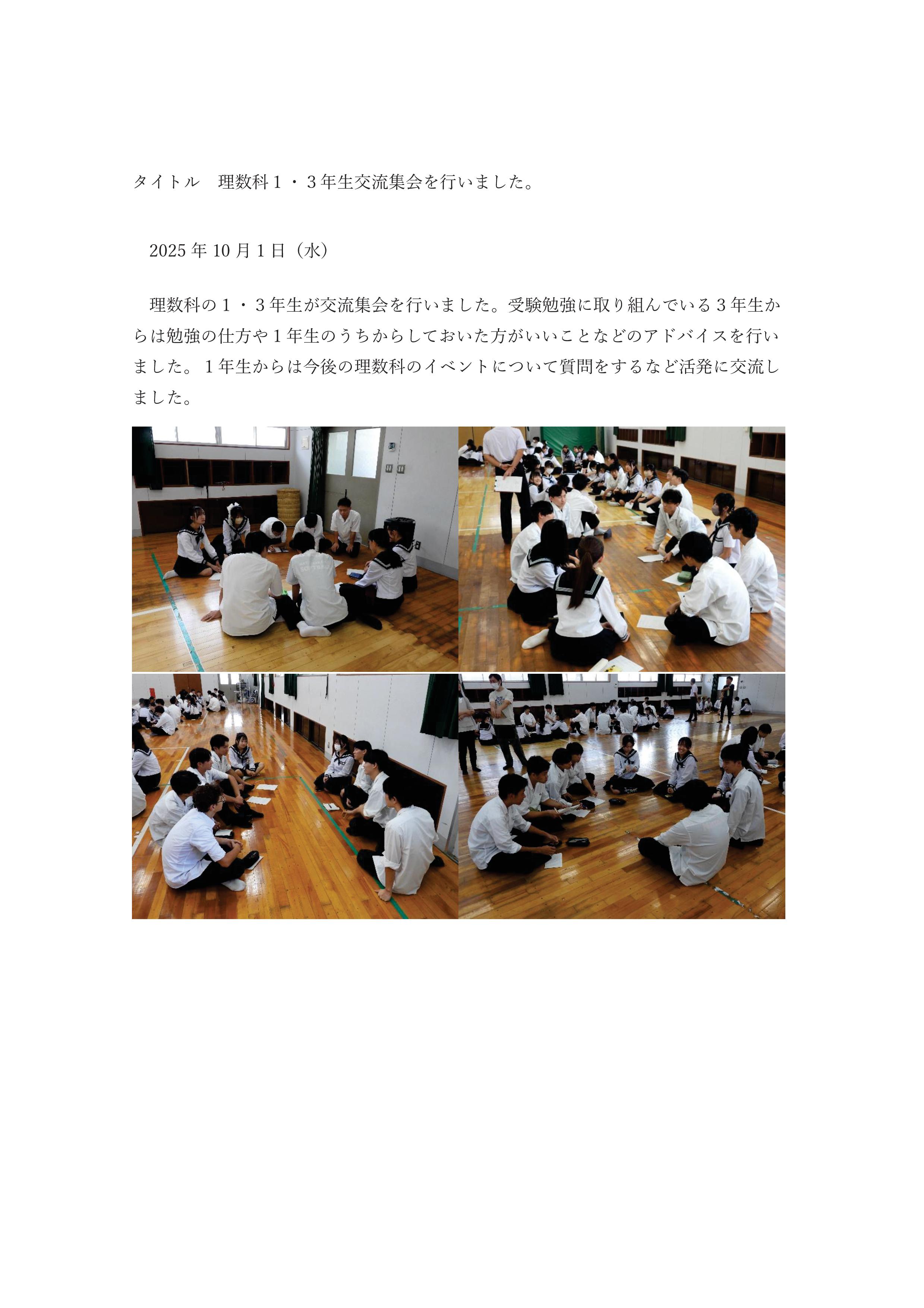 5月29日(水)に理数科1・2年生交流集会を行いました。