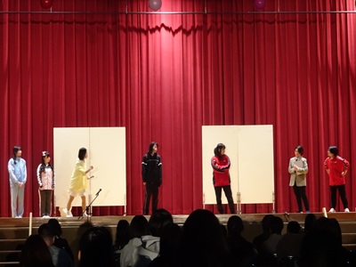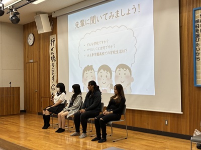 インタビュー形式で話をしてもらいました。 生徒から学校生活について話をしてもらったことで、