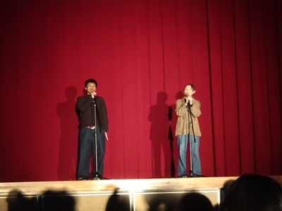 全体会の中では、「先輩にインタビュー」ということで、本校一年次に在籍する生徒をゲストに呼び、