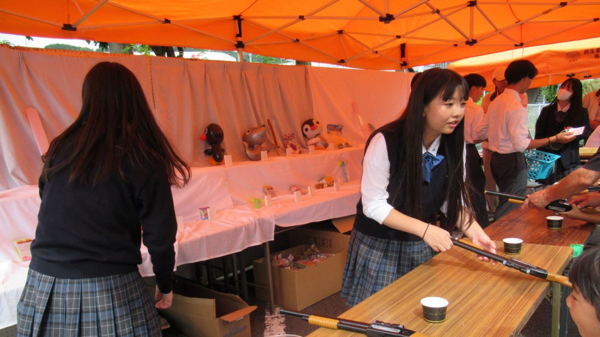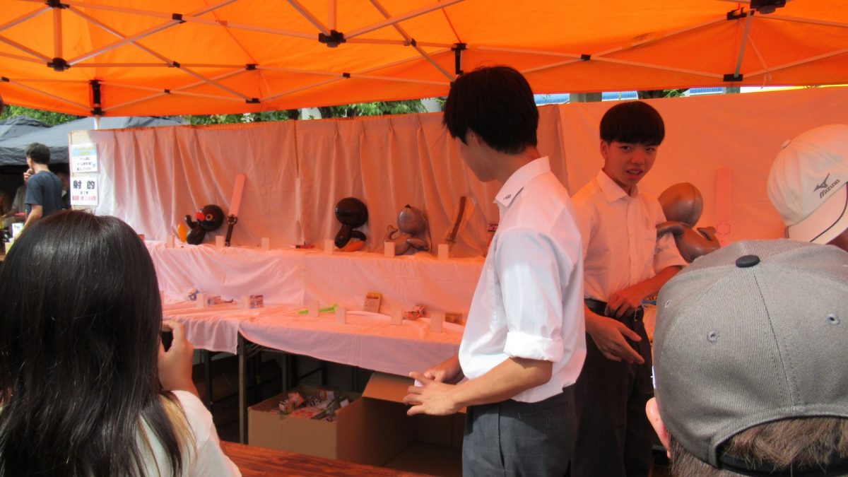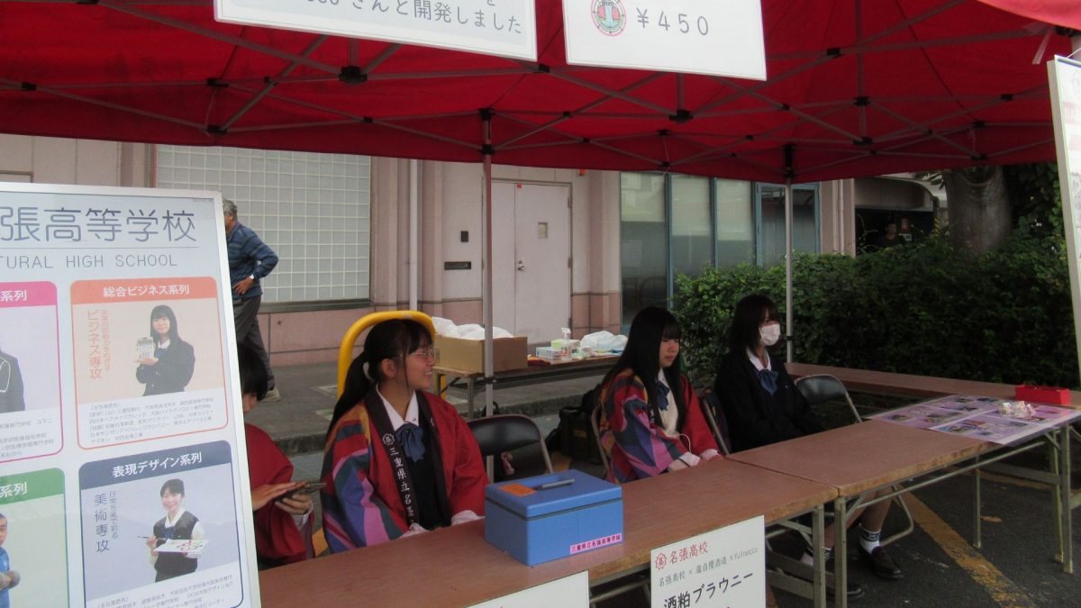 隠街道市に参加しました ホーム お知らせ 隠街道市に参加しました 名張高校では毎年秋に開かれる「隠街道市」に参加しています。 今年も2年生の有志が開発した「酒粕を使ったガトーショコラ」の販売や、総合ビジネス系列2年生による射的でイベントを盛り上げました。