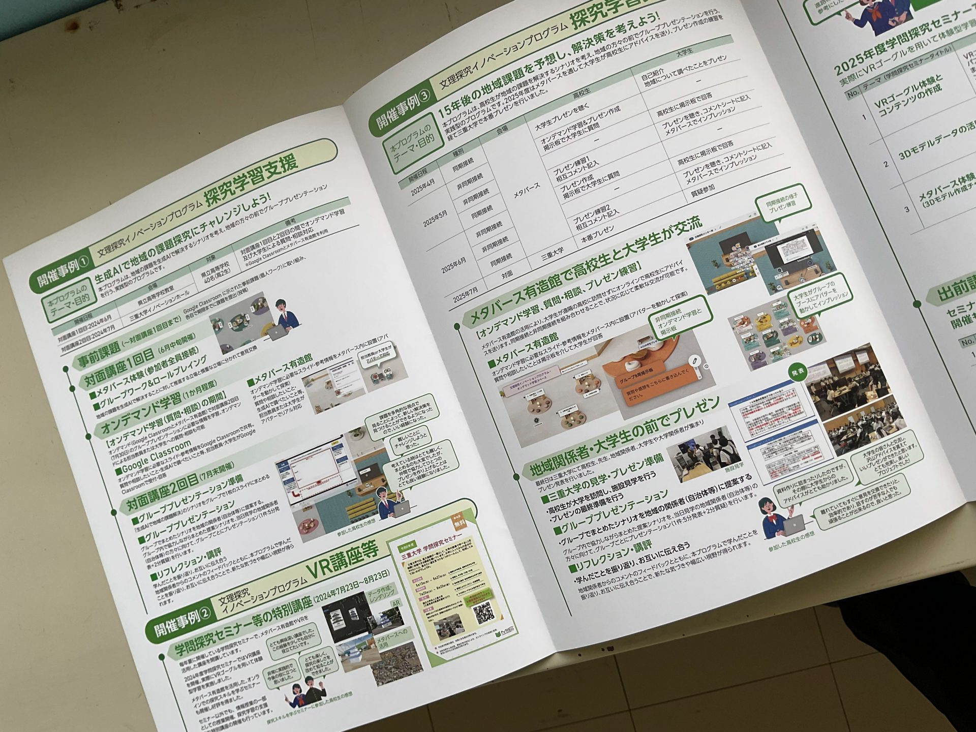 夏に実施した三重大学での生徒たちの雄姿や、メタバース(有造館)での取り組みが掲載されています。