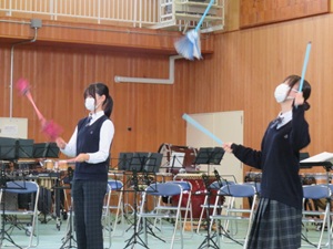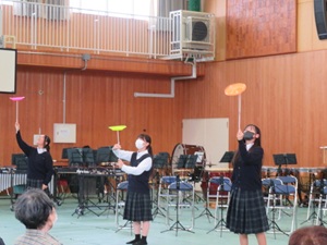 ボランティア部は、ジャグリングとハンドベルを披露しました。