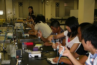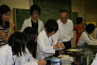◇試薬をDNAと混ぜるときに、激しく振るのか、ゆっくり振るのかがややこしく難しかったが、普段は触れることのできない実験器具に触れることができて楽しかった。実験はとても難しいと思っていたが、先生やTAの方々がとても親切に、わかりやすく教えてくれ、実験をスムーズに進めることができて良かった。また、学食やキャンパス散策など、高校とは全然違う大学の雰囲気を味わうことができた。京都大学のキャンパスはとても広く、時計台を見ることができて感動した。実験後、武田先生から大学の学部のこと、文理の選択のことなど私達の参考になる話をたくさんしていただき、とても有意義な時間を過ごすことができた。