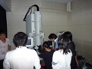 ◇自動車の扉には、金属の曲がりやすさなどで向きが決まっているという話や、製鉄には強度を上げるために物質をどれくらい加えるかを計算しているという話を聞き、驚いた。また、透過型電子顕微鏡での観察中に、偶然、転位が見られて、それについての説明もしてくださったが、自分ではしっかりと理解できなかったのが心残りとなった。このような分野の内容を体感できる機会は将来あるか分からないし、自分はどのようなことに興味があるのかよく分からなかったので、興味をもてるとても良い経験となった。