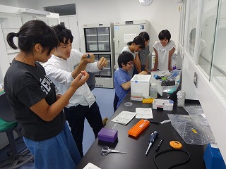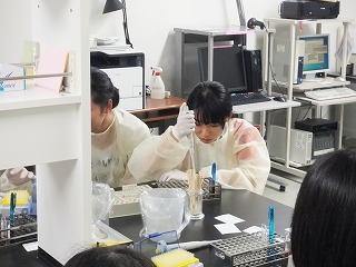 ・実験は1つ1つの作業が細かく、慎重でとても難しかった。マイクロピペットの使い方をマスターすることができた。たくさんの器具とか材料とかをたくさん触れることができ、とても興味深かった。