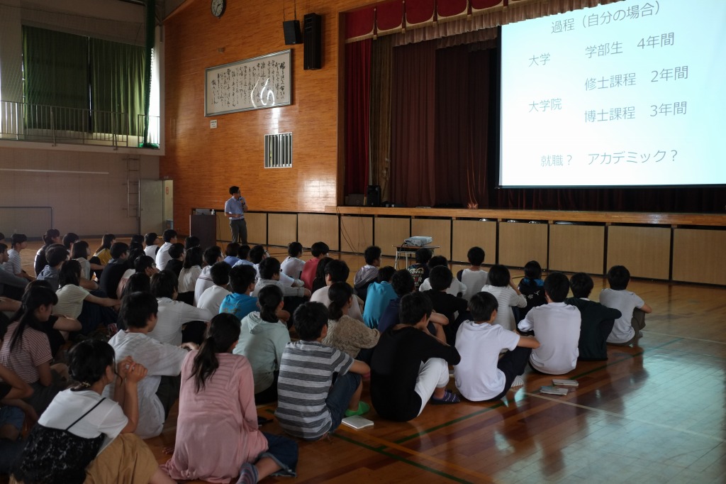 国立研究開発法人 物質・材料研究機構(NIMS)から、本校卒業生でもある西口先生を招き、2年生理系生徒を対象に