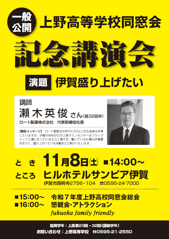 上野高校卒業生はもちろん、他校卒業生の皆様もぜひご参加ください。