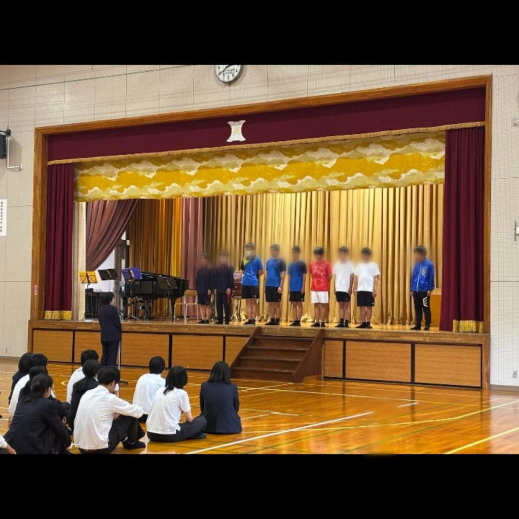 2025年5月28日 / 最終更新日時 : 2025年10月7日 hwataradmin ブログ ソフトテニス部と陸上競技部の壮行会 5月28日に、ソフトテニス部と陸上競技部の壮行会が開かれました。選手たちの活躍を願って、交流文化部による校歌演奏がされた後、各部の代表者から挨拶がありました。全校生徒の前で力強く決意を語る姿に、在校生からは大きな拍手が送られました。 また、壮行会では、生徒会役員と3年バスケ部による応援団が登場し、迫力あるエールが響き渡りました。 選手のみなさん、普段の練習の成果を存分に発揮して、大会頑張ってきてください(*^^*)