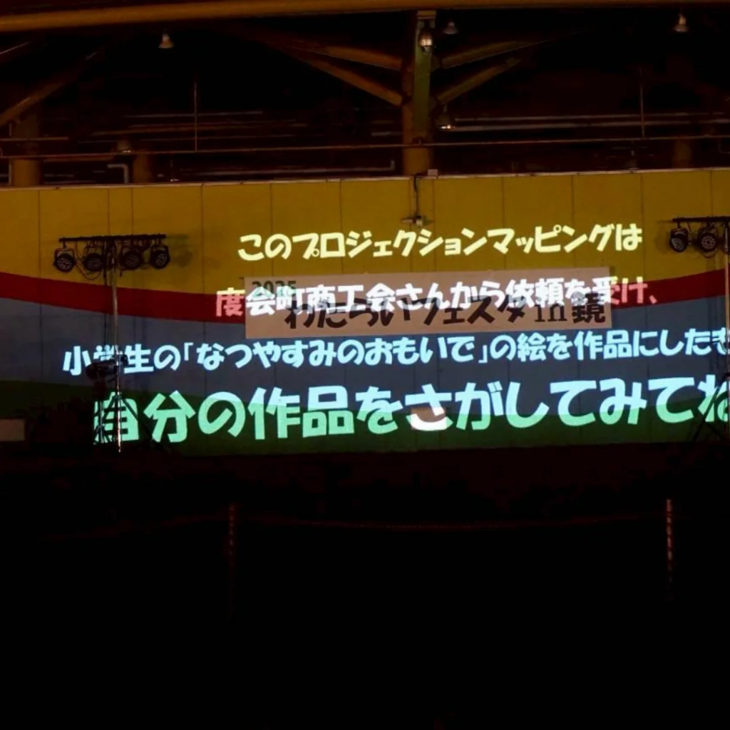 発表では、プロジェクションマッピングにて度会町の小学生が描いた絵を映し出すことや、度会町PR動画を初披露することができました。地元の方々からも好評でした!