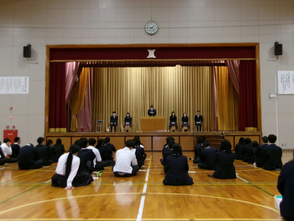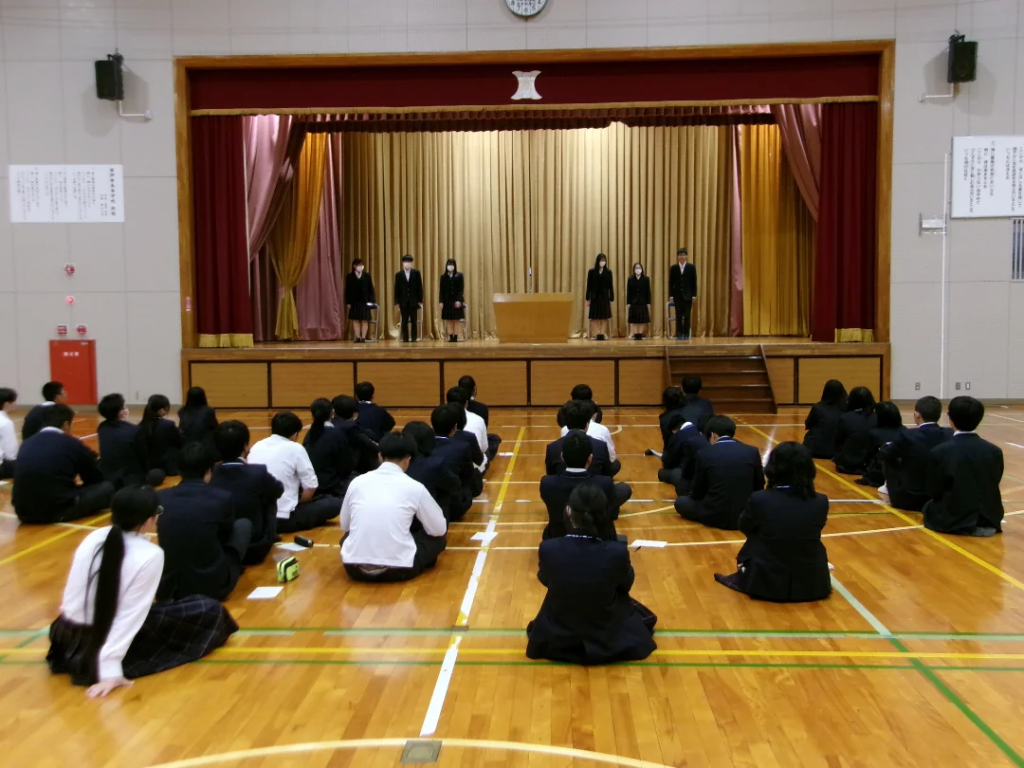 令和8年度前期生徒会役員の立会演説会が行われました。立候補者の皆さんから、「皆が楽しめる体育祭を」や、「生徒会役員になることで自分自身の成長につなげたい」等の頼もしいスピーチがありました。