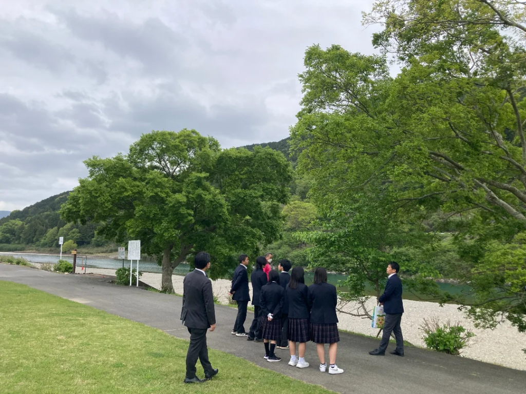 1学年は、キャリア教育の一環として、教育委員会の方や地域おこし隊の方にお越しいただき、度会町の取組課題などを教えていただきました。その後、宮リバーや茶畑の見学に行きました!