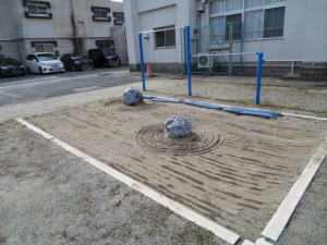 高等部社会科で、室町時代の学習の一環として、自分たちで石庭をつくったそうです。