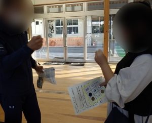 12月10日(水)水曜活動で「ウォークラリー デ ビンゴ」を行いました。聾学校の職員の好きな食べ物や2階に置いてあるゲームを聞いたり、傘立てにさしてある傘以外の物を当てたり、8つのミッションをクリアしてビンゴを目指しました。縦、横のビンゴが揃うと1個ずつミニお菓子を貰い、最終ミッションは黒ひげ危機一髪ゲームでした。ビンゴの後は、一緒にお菓子を食べて楽しく過ごしました。