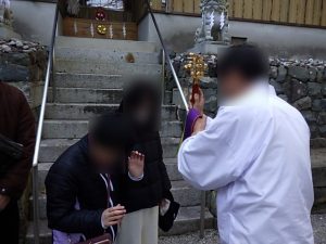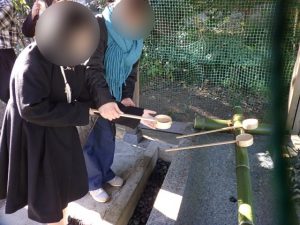 1月8日(水)13時30分から、高茶屋神社へ初詣に出掛けました。風が強くとても寒い日でしたが、みんなで元気に歩きました。手水舎で手を清めて参拝し、お願い事をしました。また、神主さんより一人ずつお祓いをしていただきました。今年も良い年になりますように。