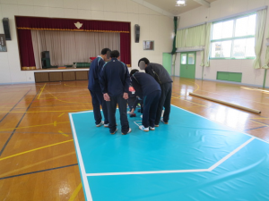 毎年1回、この時期に津商業の生徒の皆さんが本校に来てくださいます。 今日は、盲学校の高等部生徒がこの日のために考えた4つの活動に分かれて楽しい時を過ごしました。 写真1 ボッチャチームは、高等部の生徒が津商業のみなさんに実際のコートとボールを使いながらルールの説明をしました。写真2 終了後の得点判定、全員がボールの近くに寄って、目や手、定規などを使ってジャックボール(白い球)に最も近いのはどのボールか確認しています。