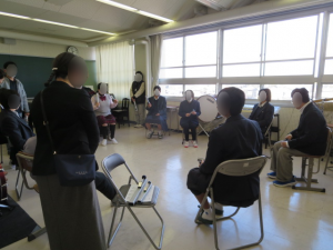 写真5 音楽チームは、トーンチャイムなどで、みんなで合奏をしました。 初めてとは思えないくらい、すぐにメロディーを奏でることができていました。