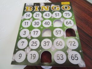 写真2 聞いた数字の窓を開けていきます。普通のビンゴカードに見えますが・・