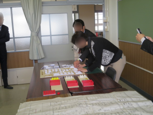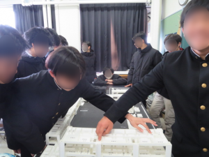 新校舎の設計図を元に、触って配置が確かめられる触察模型の制作に取り組んでもらっています。