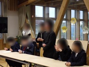 4月9日(火) 盲・聾合同の「歓迎会」を行いました。各舎生代表挨拶の後、聾学校の新入舎生2名が自己紹介をしました。今年度、盲学校の新入舎生はいません。その後、自己紹介を兼ねて聾学校の新入舎生に質問をして、和やかな雰囲気で楽しいひと時を過ごしました。今年1年みんな仲良く楽しい寄宿舎生活にしていきましょう。