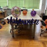 2025年10月31日 / 最終更新日時 : 2025年10月31日 情報担当 お知らせ ハッピーハロウィン! トリックオアトリート! 小学部の子どもたちがかわいいおばけに変身して、校内をうろうろしています。校長室もハロウィンバージョンに飾り付けられました!