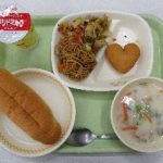 2026年2月13日 / 最終更新日時 : 2026年2月13日 編集者 給食 2月13日の給食 今日の献立は、「セルフ焼きそばパン(米粉パン+焼きそば)・アシドミルク・ハートのスイートコロッケ・鮭のクリームスープ」です。もっちりとした米粉のパンに焼きそばをはさんで食べました。焼きそばは、合いびきミンチ肉を使用し、パ […]
