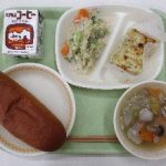 2025年11月17日 / 最終更新日時 : 2025年11月17日 編集者 給食 11月14日の給食 今日の献立は、「黒糖パン・コーヒー牛乳・ちくわのマヨチーズ焼き・バンバンジーサラダ・秋野菜のスープ煮」です。ちくわのマヨチーズ焼きは人気メニューの一つです。パンにもご飯にもあう一品です。サラダは鶏ささみ肉を使用し、野菜た […]