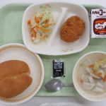 2025年10月14日 / 最終更新日時 : 2025年10月14日 編集者 給食 10月10日の給食 今日の献立は、「コロッケバーガー(バーガーパン+コロッケ+そえ野菜)・コーヒー牛乳・白菜の豆乳スープ」です。パンにコロッケと茹で野菜をはさみ、ソースをかけて食べました。コロッケが大きく、食べ応えがあり、外はサクサク、中は […]