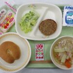 2026年1月13日 / 最終更新日時 : 2026年1月13日 編集者 給食 1月9日の給食 今日の献立は、「セルフハンバーガー(パン+ハンバーグ+そえ野菜)・牛乳・白菜のスープ・いちごクレープ」です。2026年の最初の給食は、ハンバーガーです。バーガーパンの切れ目に、ハンバーグとキャベツ等の野菜をはさんで、ケチ […]