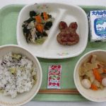 2025年10月7日 / 最終更新日時 : 2025年10月7日 編集者 給食 10月6日の給食 今日の献立は、「さつまいもごはん・牛乳・うさぎさんハンバーグ・わかめサラダ・うずら卵と野菜の煮物」です。今日は「中秋の名月」、十五夜です。中秋の名月は、秋の収穫に感謝する「芋名月」です。今日は小さく切ったさつまいもをご飯 […]