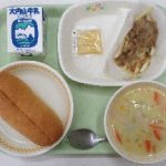 2025年11月27日 / 最終更新日時 : 2025年11月27日 編集者 給食 11月26日の給食 今日の献立は、「ご飯・牛乳・さわらの野菜マヨ焼き・小松菜サラダ・みぞれ汁」です。魚の上にピーマン+玉ねぎ+人参をのせ、しょうゆマヨネーズとパン粉をのせて焼きました。小松菜サラダは、野菜本来の味を味わえました。みぞれ汁は、 […]