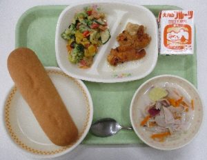2025年9月24日 / 最終更新日時 : 2025年9月24日 編集者 給食 9月22日の給食 今日の献立は、「ご飯・牛乳・チンジャオロースー・黄金汁・抹茶プリン」です。チンジャオロース―は、ピーマンと肉を炒める中華料理です。今日は、牛肉をたっぷり使ったので、「青椒牛肉絲」と呼びます。ピーマンは緑色の青ピーマンだけでなく、黄色と赤色のパプリカも使い、彩りが鮮やかで、筍のコリコリした食感も良かったです。黄金汁(こがねじる)は、新メニューで、新潟県の郷土料理で、野菜をたっぷり使用し、「豊作祝い」として作られる料理です。
