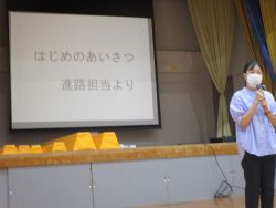 2025年9月25日 / 最終更新日時 : 2025年9月25日 情報担当 進路 高等部現場実習壮行会 9月17日(水)、現場実習壮行会が開かれました。現場実習に向けて、2年生が「笑顔で挨拶をする。」 「最後まであきらめずに仕事をする。」など、実習の目標を発表して決意表明をしました。そのあと、校長先生や3年生から激励の言葉をもらいました。